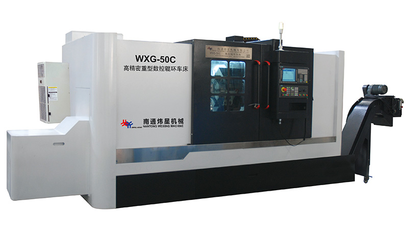 WXG-50C is a high precision heavy duty nc roll ring lathe, draw lessons from the international famous heavy duty nc inclined car manufacturing technology, apply to the steel enterprises in the ring of ultra-high hardness large size roller precision turning processing and precision machining of various kinds of axial ring parts. The strong rigidity to adapt to the heavy cutting machine tool, has high machining efficiency, convenient operation, high precision, advanced automation, etc. The appearance of the machine tool modelling, operating systems, safety systems adopt humanized design. The whole machine design satisfies the requirement of environmental protection design.